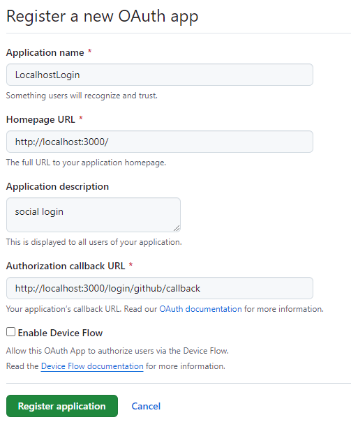 - GET : Authorization callback URL : ex)`http://localhost:3000/login/github/callback`