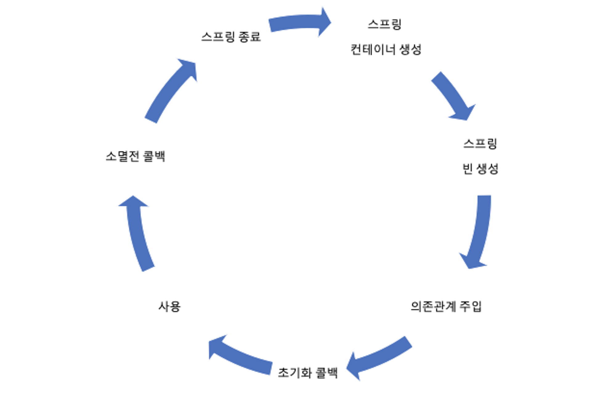 - 스프링 빈은 객체를 생성 후 의존관계를 주입한 뒤 사용할 준비가 완료된다.