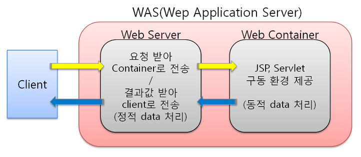- 사용자가 많지 않을 때는 WEB-WAS-DB 의 구조로도 DB에 무리가 가지 않지만 사용자가 많아지면 무리가 간다.