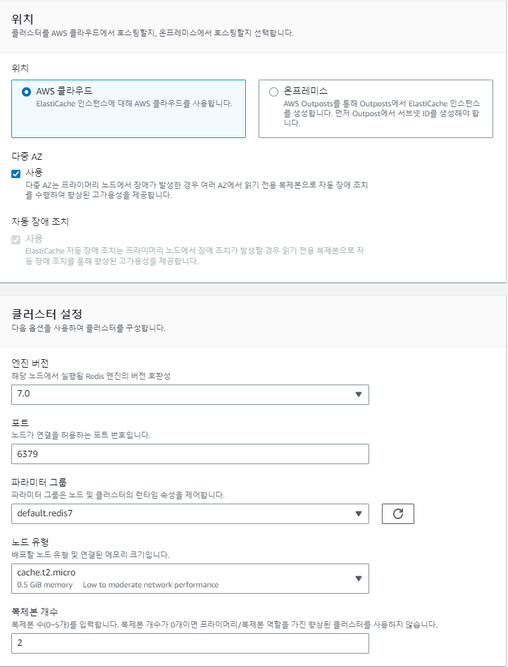 2. Elasticache 서버 만들기