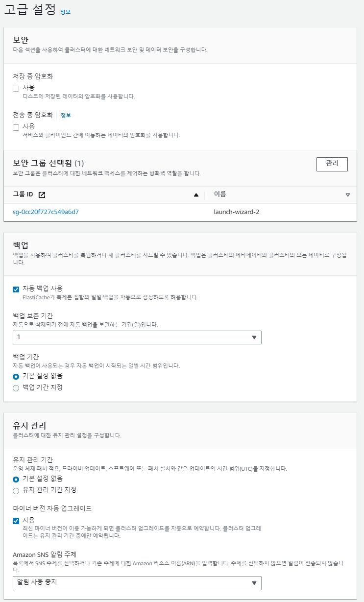 1) AWS에 들어가서 Amazon ElastiCache에 들어간다.