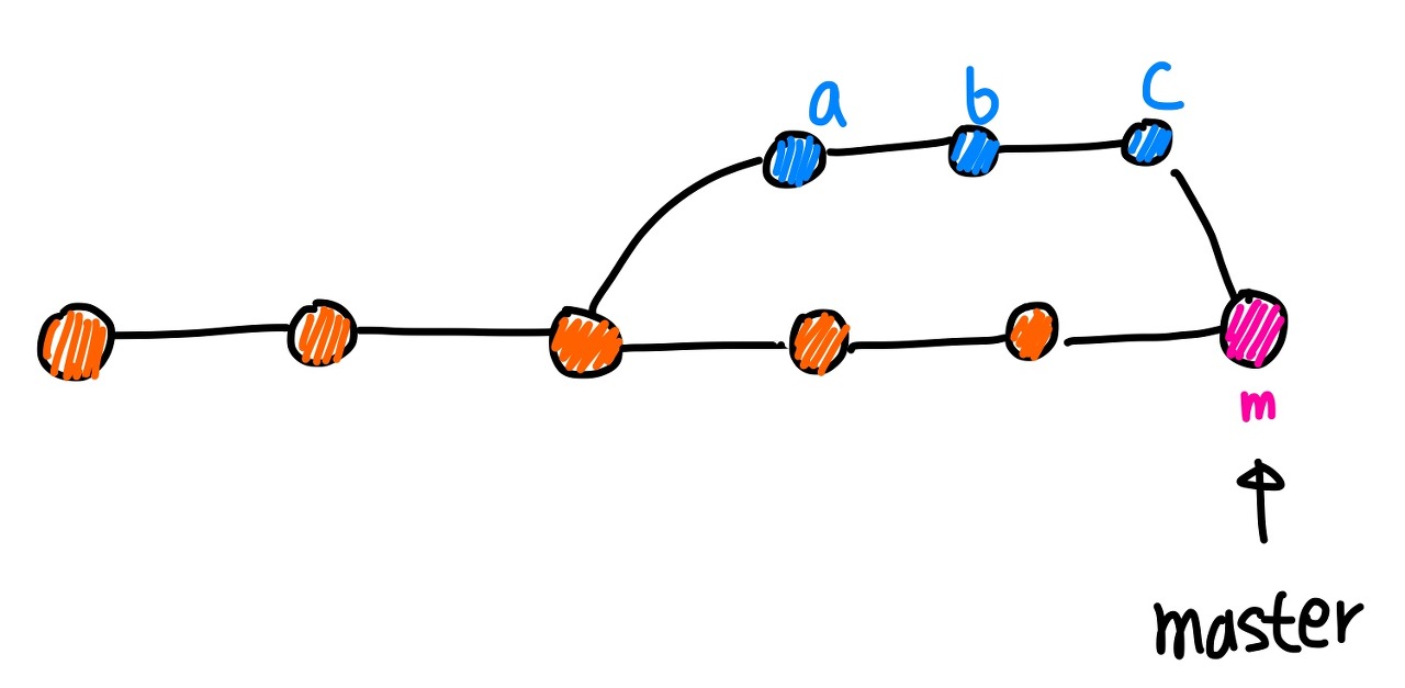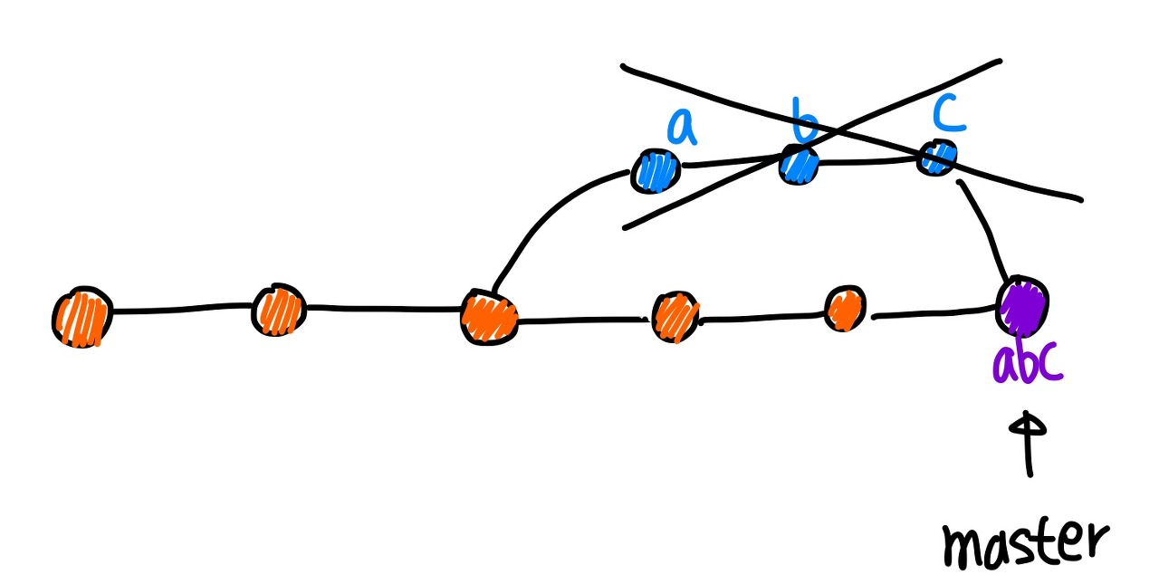 - abc를 통합한 새로운 커밋을 만들고 그것을 머지한다.