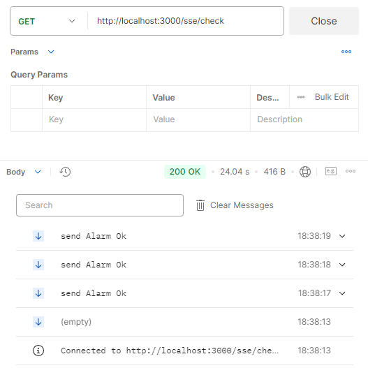 - 포스트맨을 이용했을 때도 위와 같이 알림을 확인할 수 있다.