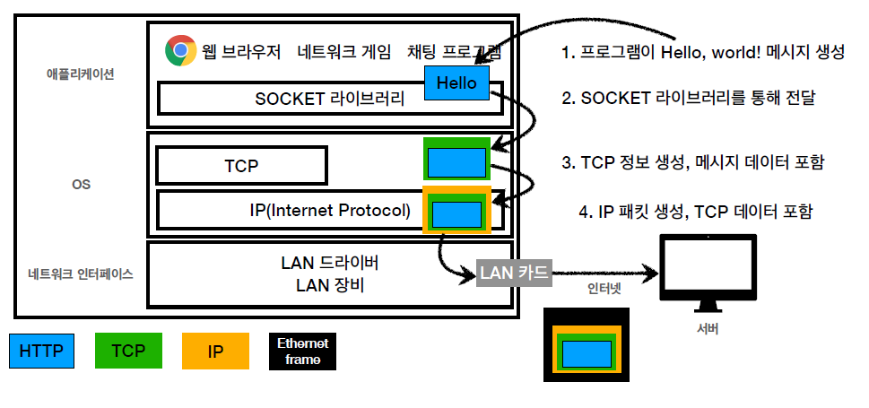 - 패킷(Packet)이라는 통신 단위로 데이터 전달