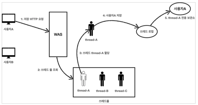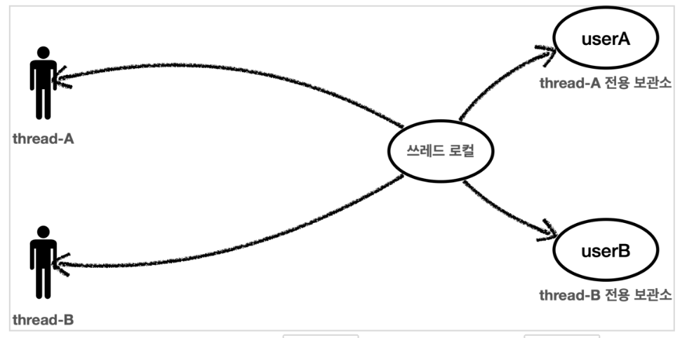 - Thread-A는 사용자 A의 데이터를 Thread-A의 쓰레드 로컬에 저장한다.