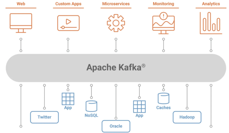 - 카프카 시스템은 여러 요소(노드)와 함께 구성될 수 있어 카프카 클러스터라고 불리기도 하며, 어플리케이션과 서버간의 비동기 데이터 교환을 용이하게 하며, 하루에 소 조개의 이벤트 처리가 가능하게 만드는 역할을 한다.